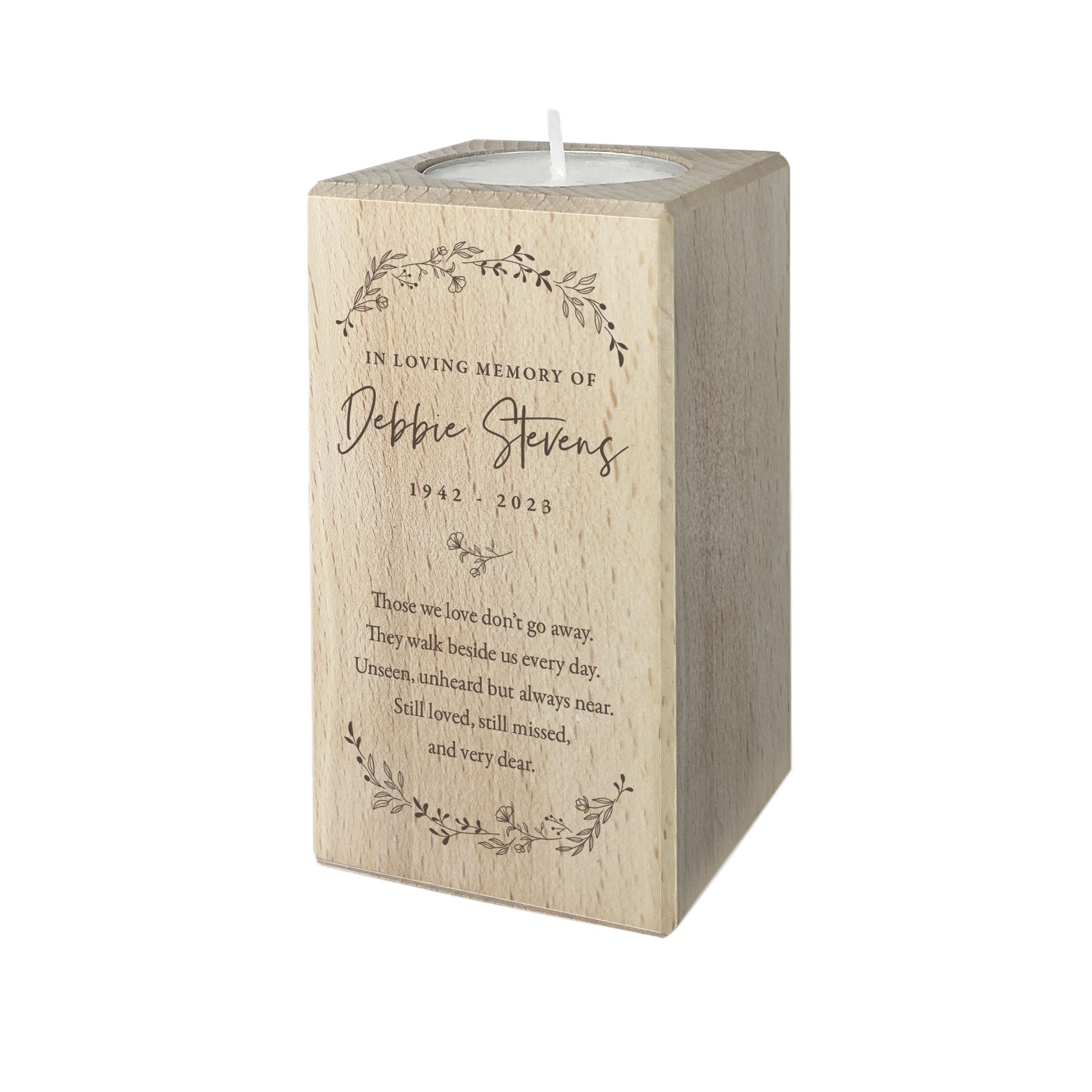 Personalised Solid Wooden Wreath Memorial Tea Light Holder - 2 Sizes