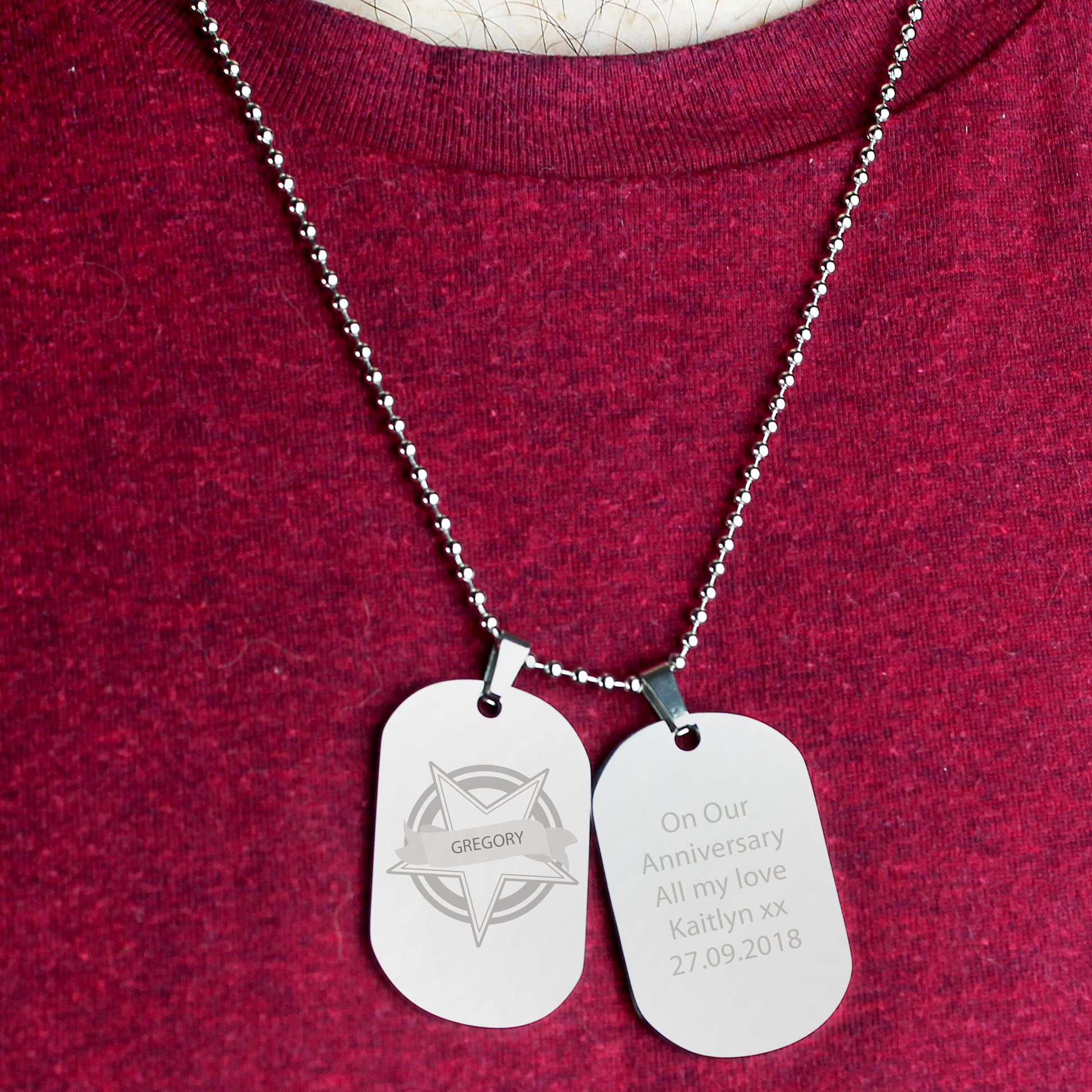 Personalised Star Stainless Steel Double Dog Tag Necklace