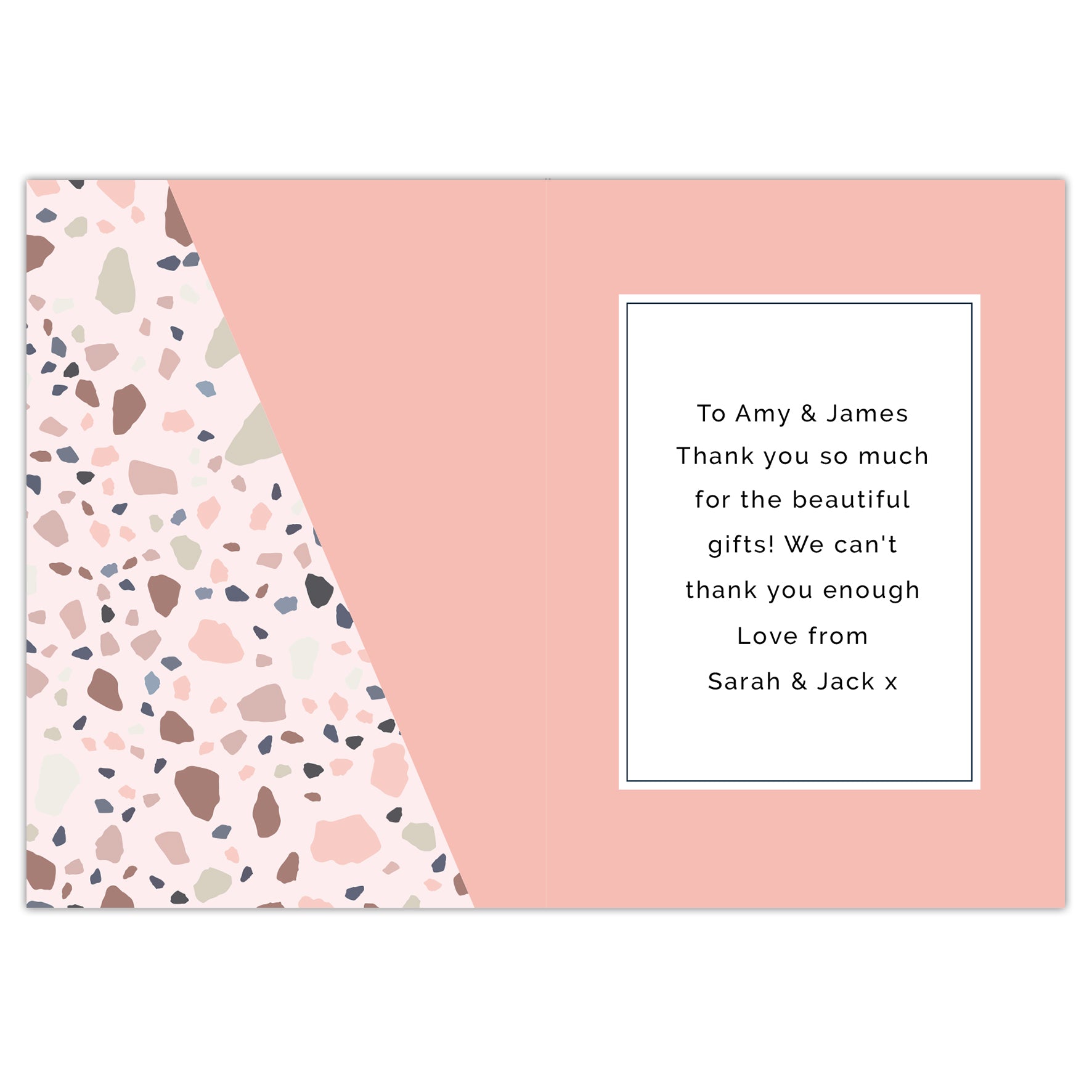 This modern terrazzo design has the following fixed wording 'THANK YOU'
