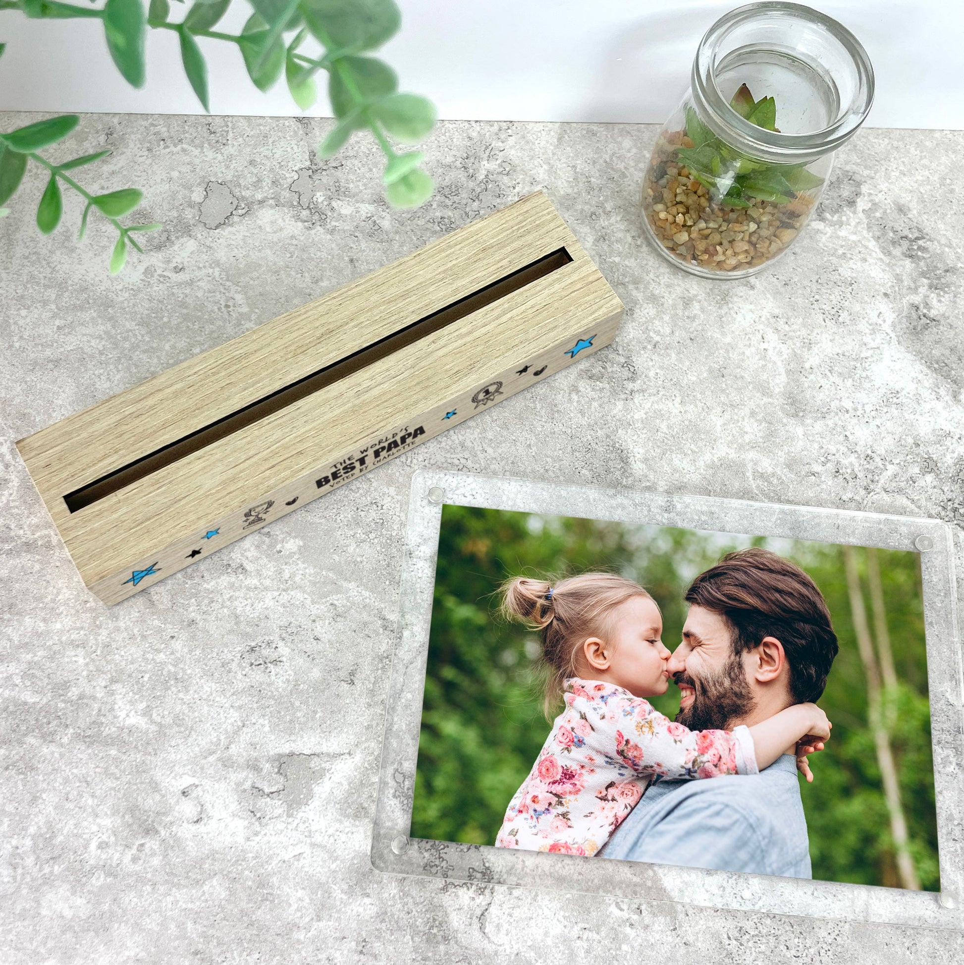 Need a gift for your kids to give to Dad on Father's Day? This personalised wooden photo frame is the way to go. Pick "The World's Best..." Dad, Daddy, Pops or Papa and add a line of text to make it one-of-a-kind and special, something he'll cherish for ages.