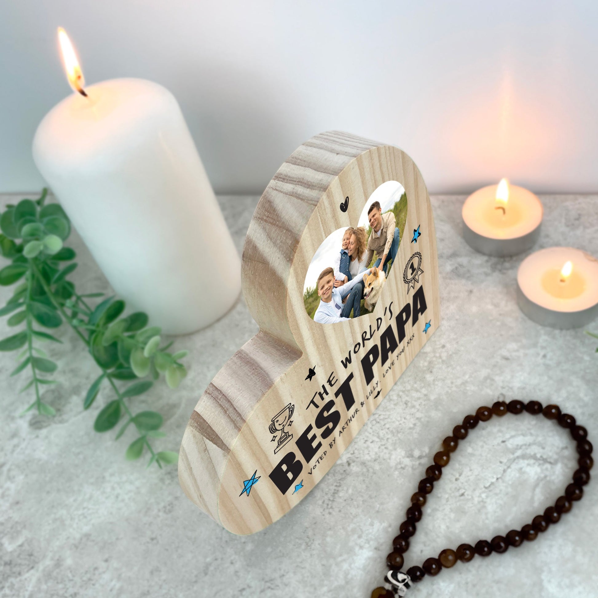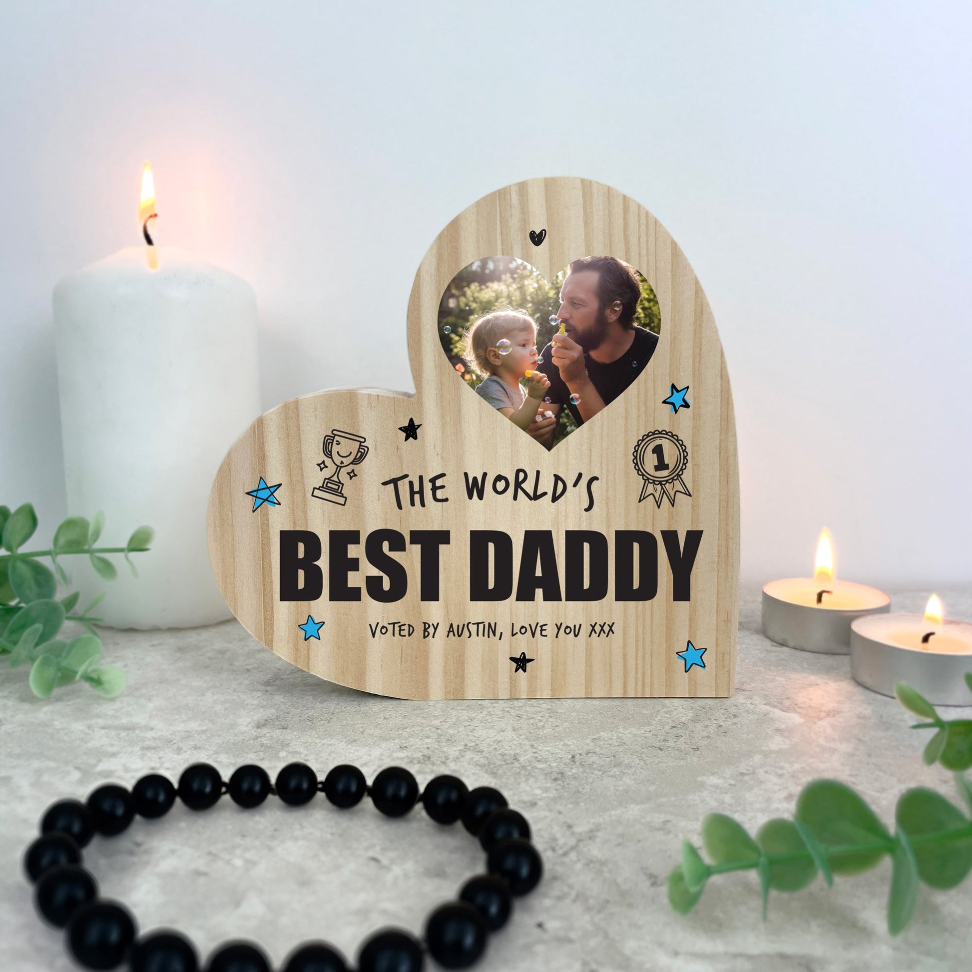 Looking for a perfect Father's Day gift your kids can give their beloved Daddy? Look no further than this personalised wooden heart! Choose from various options like The World's Best, Daddy, Dad, Pops, Papa, and add their favourite photo and a line of text for a one-of-a-kind gift that will be treasured for years. It's a delightful present for a much-loved Dad on Father's Day!