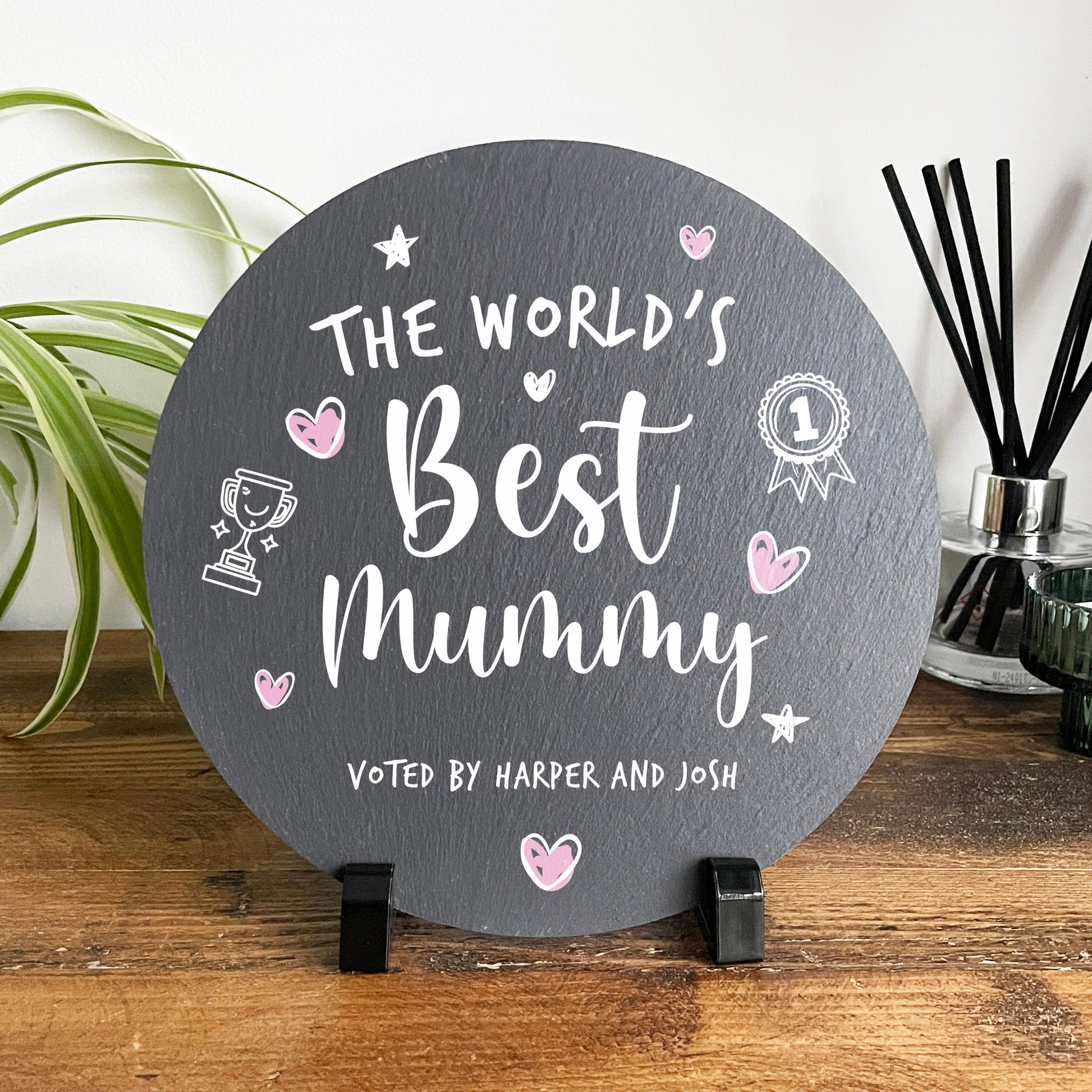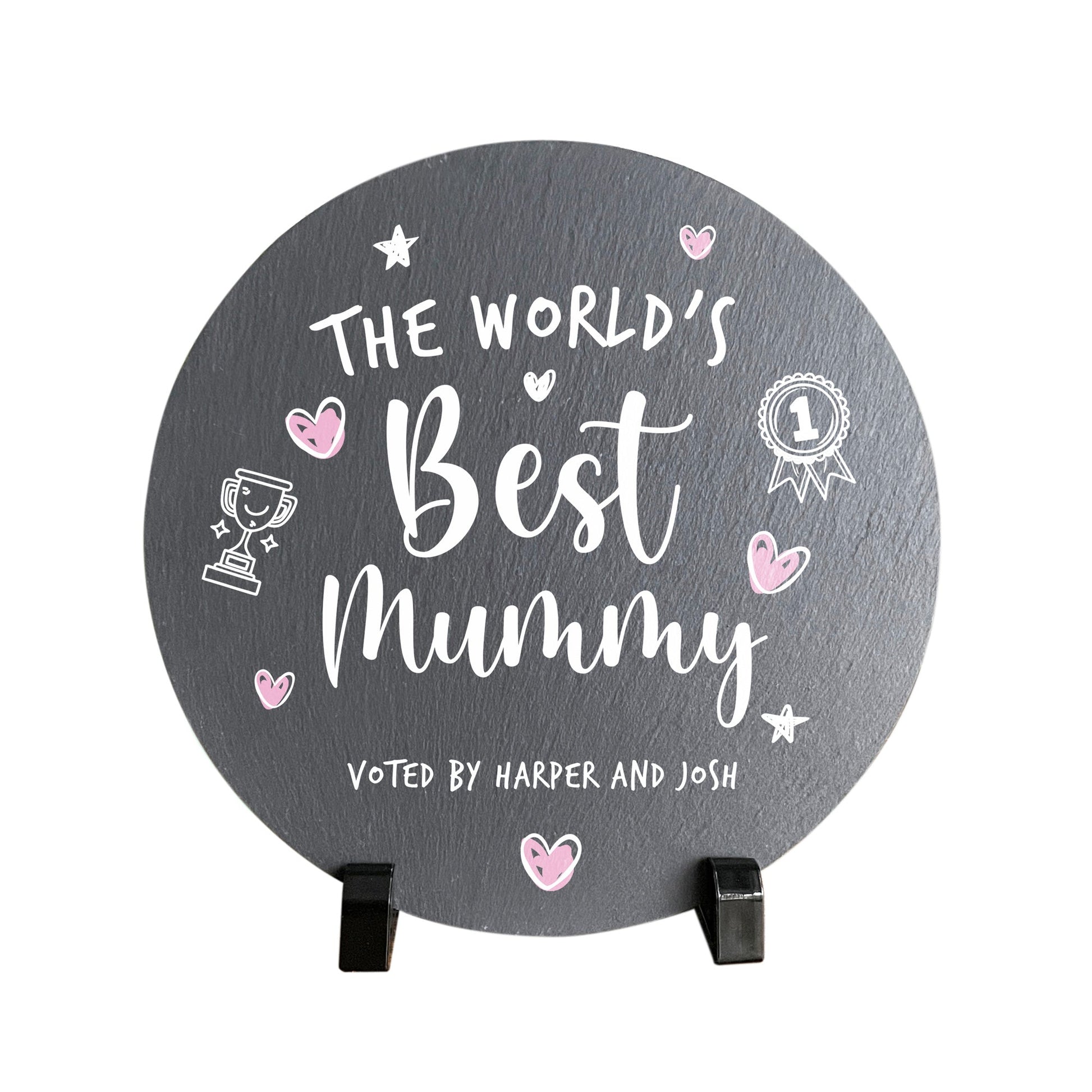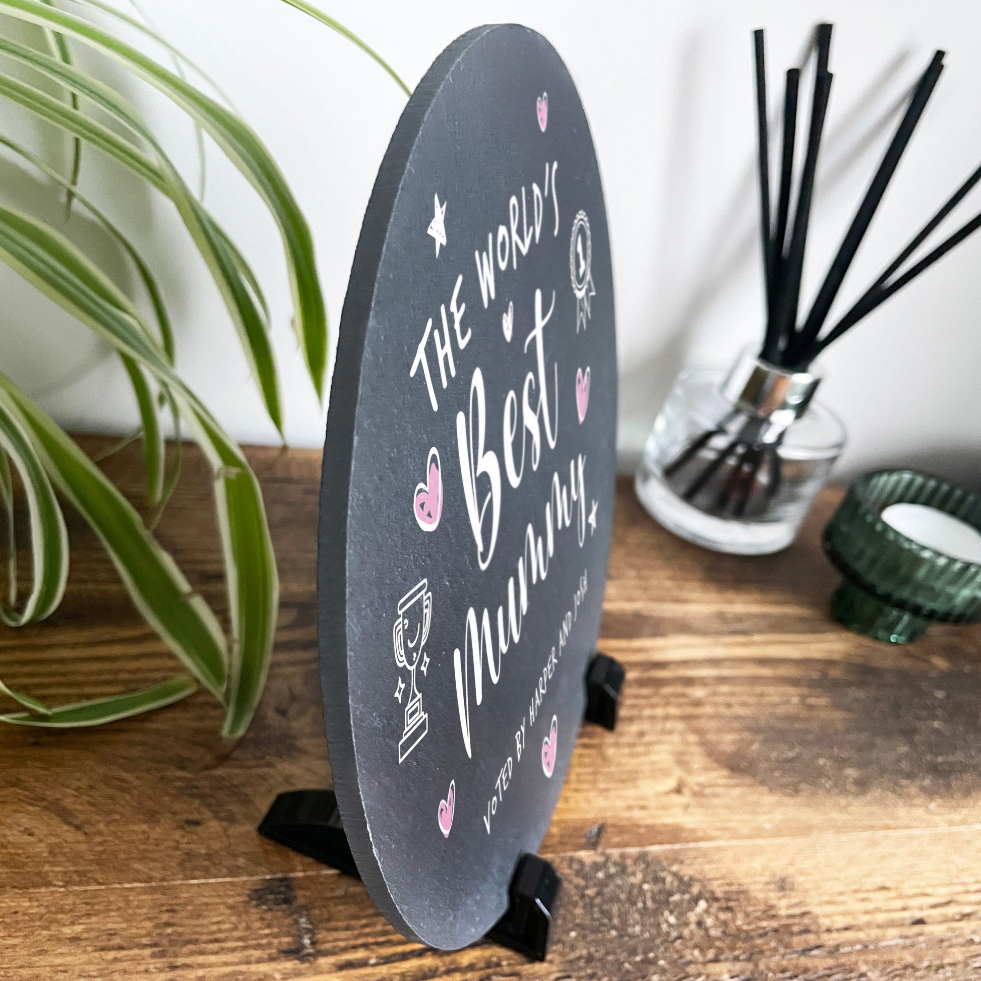Personalised The World's Best Mum Circular Slate With Stand 20cm