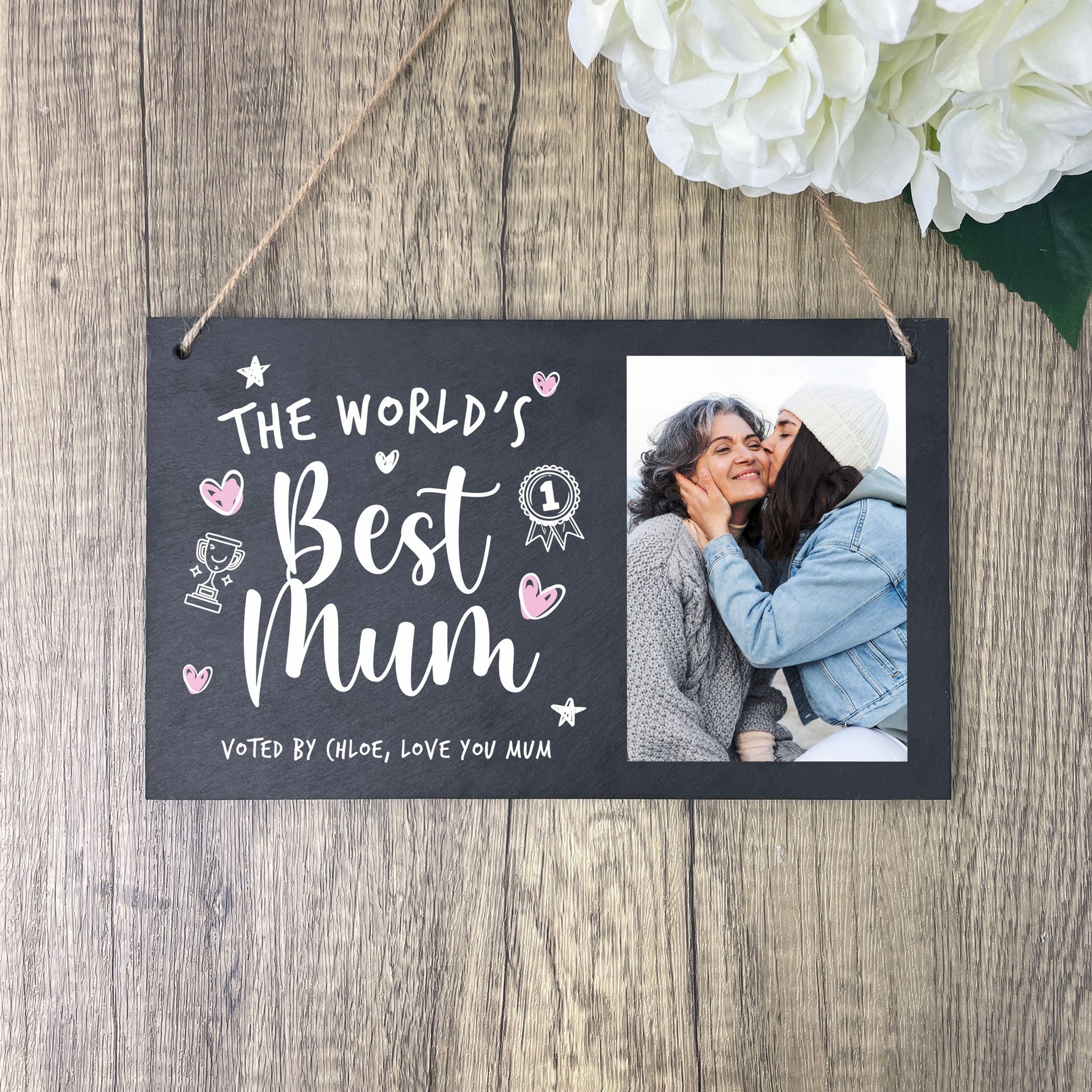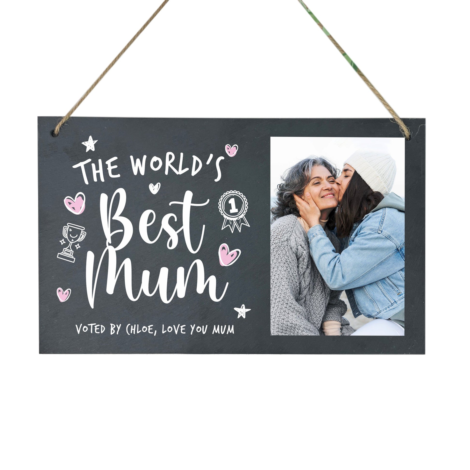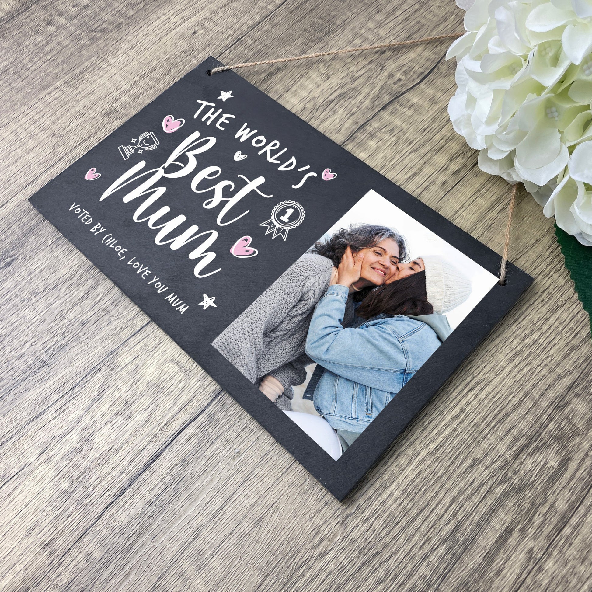 Personalised The World's Best Mum Photo Slate Hanging Plaque 25 x 15cm