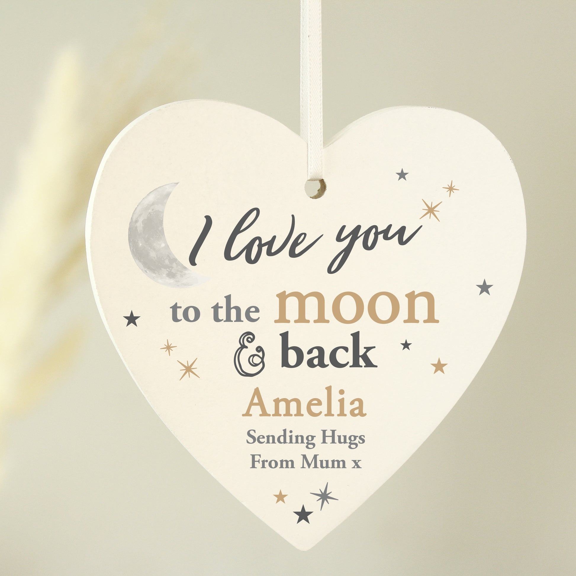 Personalised To the Moon and Back... Wooden Heart Decoration