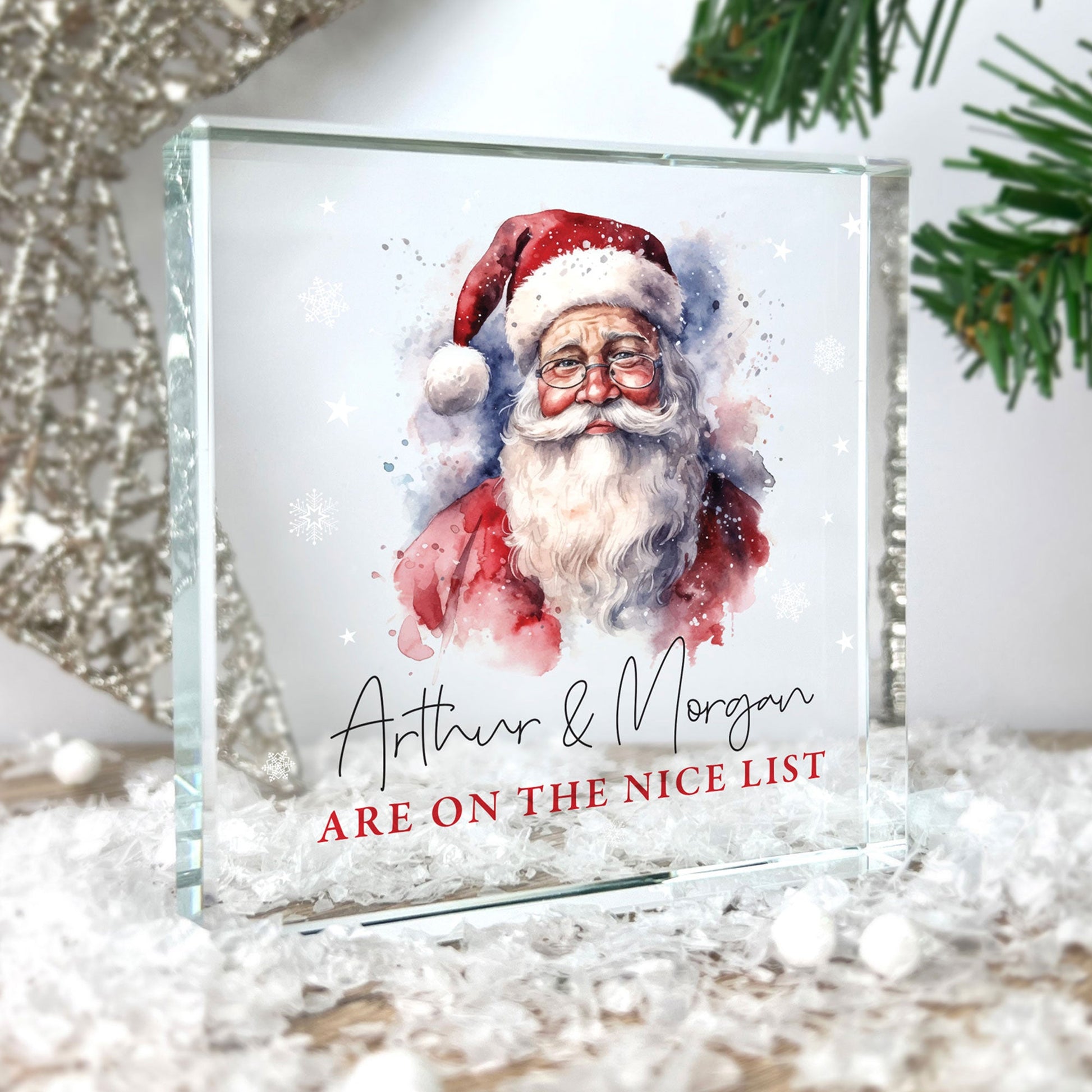 Personalised Traditional Santa 'Nice List' Crystal Token