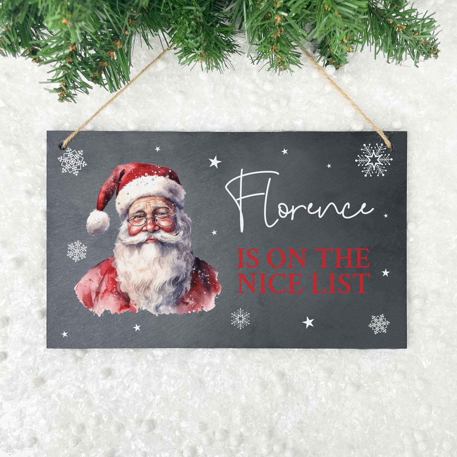 Personalised Traditional Santa Nice List Slate Hanging Plaque 25 x 15cm