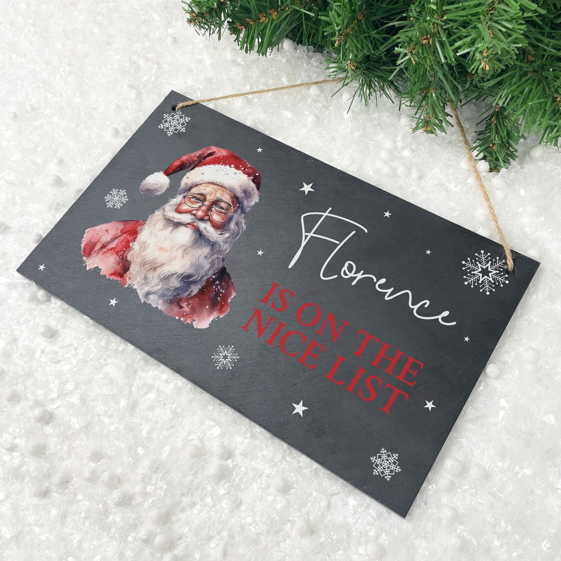 Celebrate being on Santa's Nice List with this lovely Christmas slate hanging plaque from our 'Traditional Santa' collection.