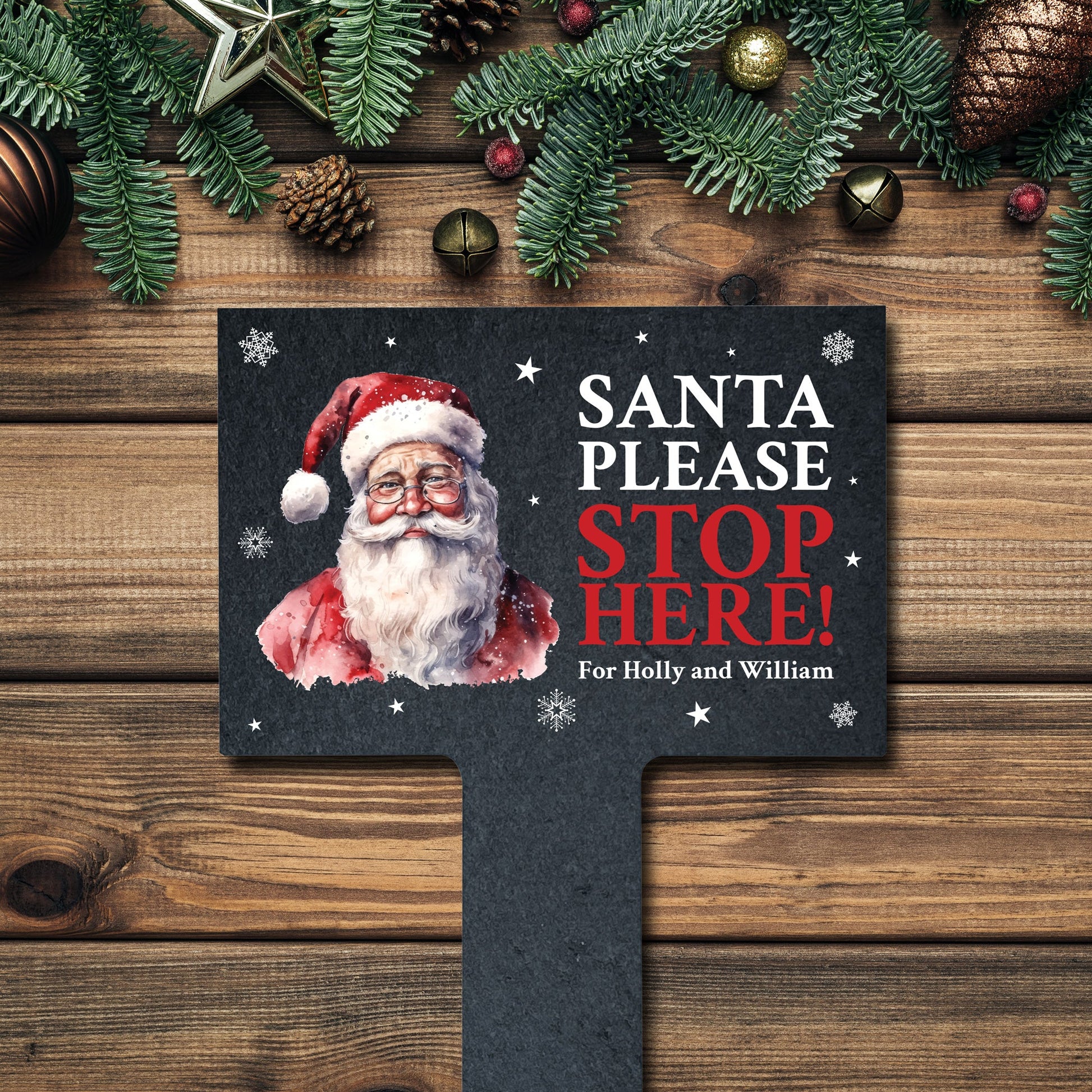 This personalised "Santa Please Stop Here" sign is a lovely Christmas keepsake, perfect for displaying outside your home year after year. Unlike many wooden signs, this slate sign won't rot.