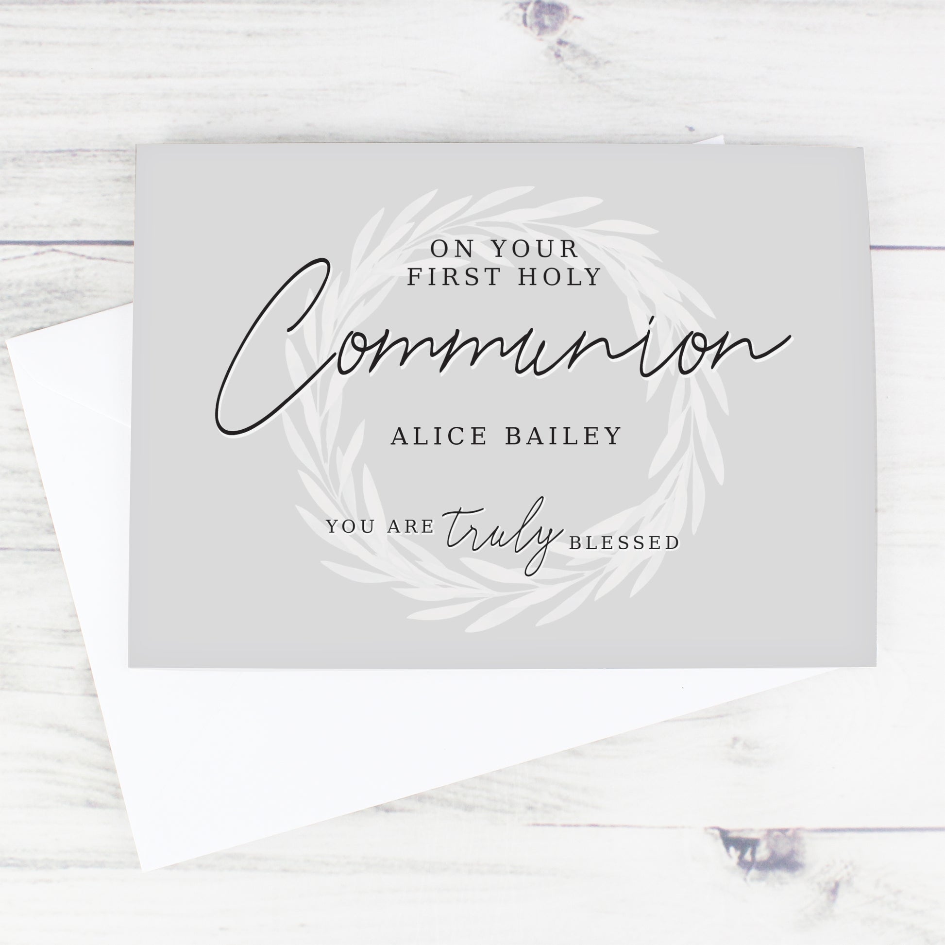"On Your First Holy Communion" & "You are truly blessed" is fixed text.