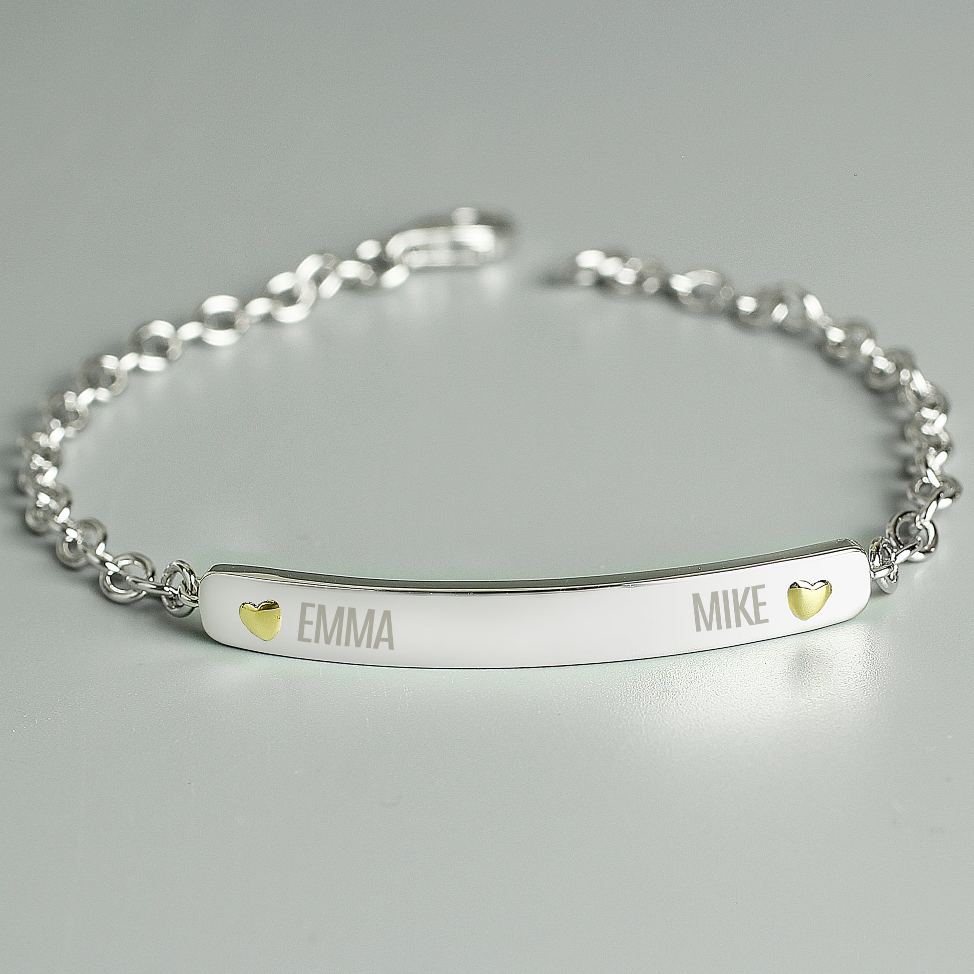 Personalised Two Names Sterling Silver and 9ct Gold Bar Bracelet