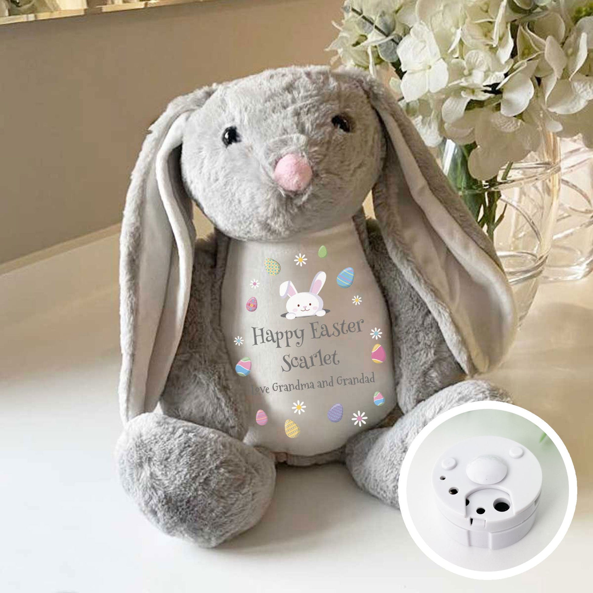 Treat a child or grandchild to a unique Easter gift: our Personalised Voice Message Easter Bunny in cream! This super-soft, huggable bunny delivers a special voice message recorded just for them, a lovely alternative to chocolate.
