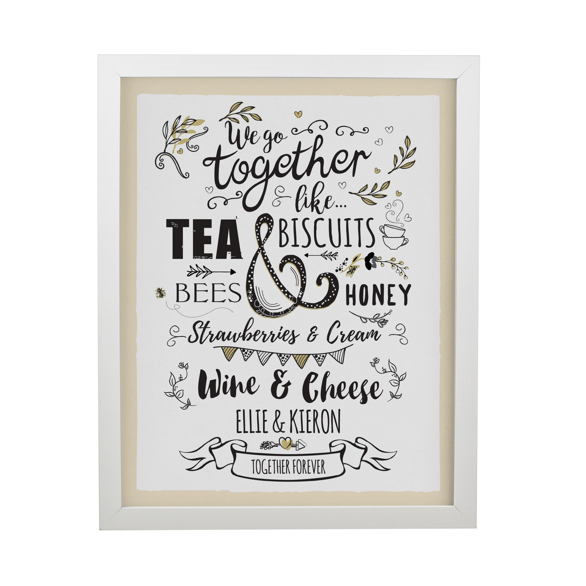 The words 'We go together like...Tea & Biscuits, Bees & Honey, Strawberries & Cream, Wine & Cheese' are fixed.