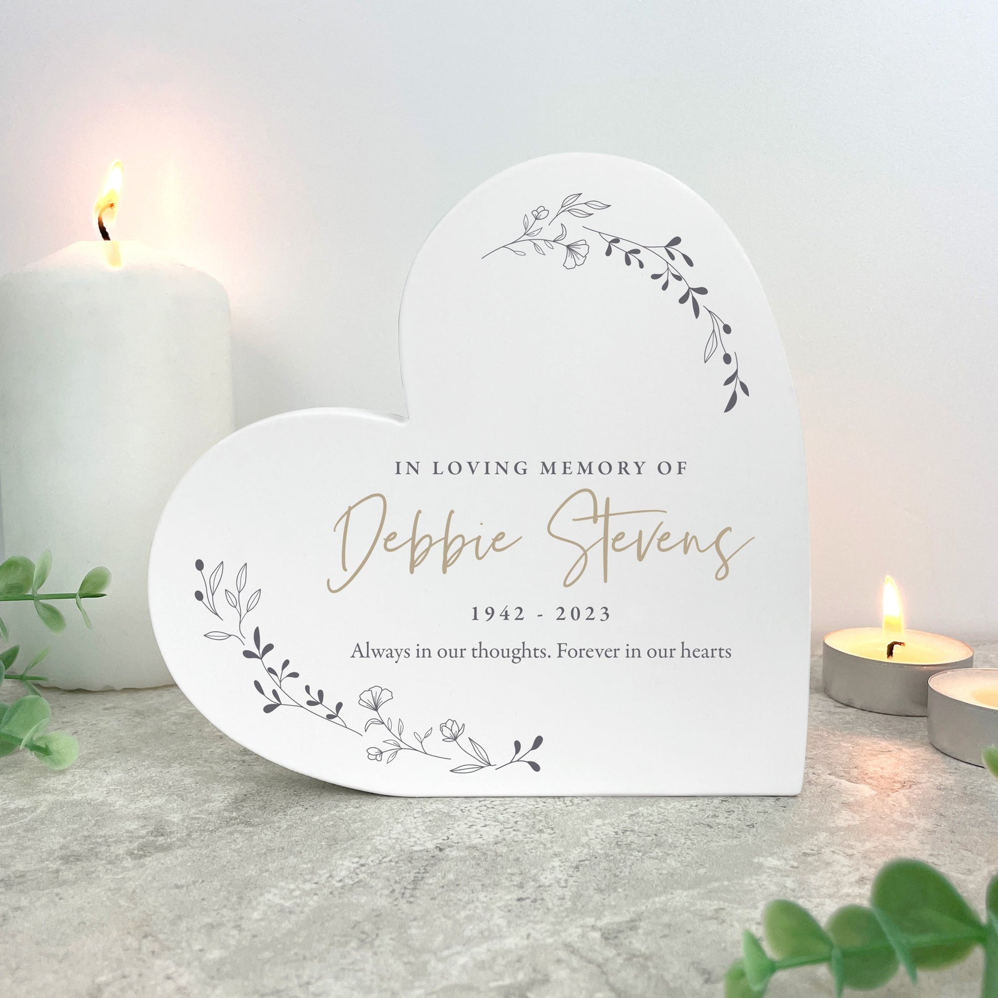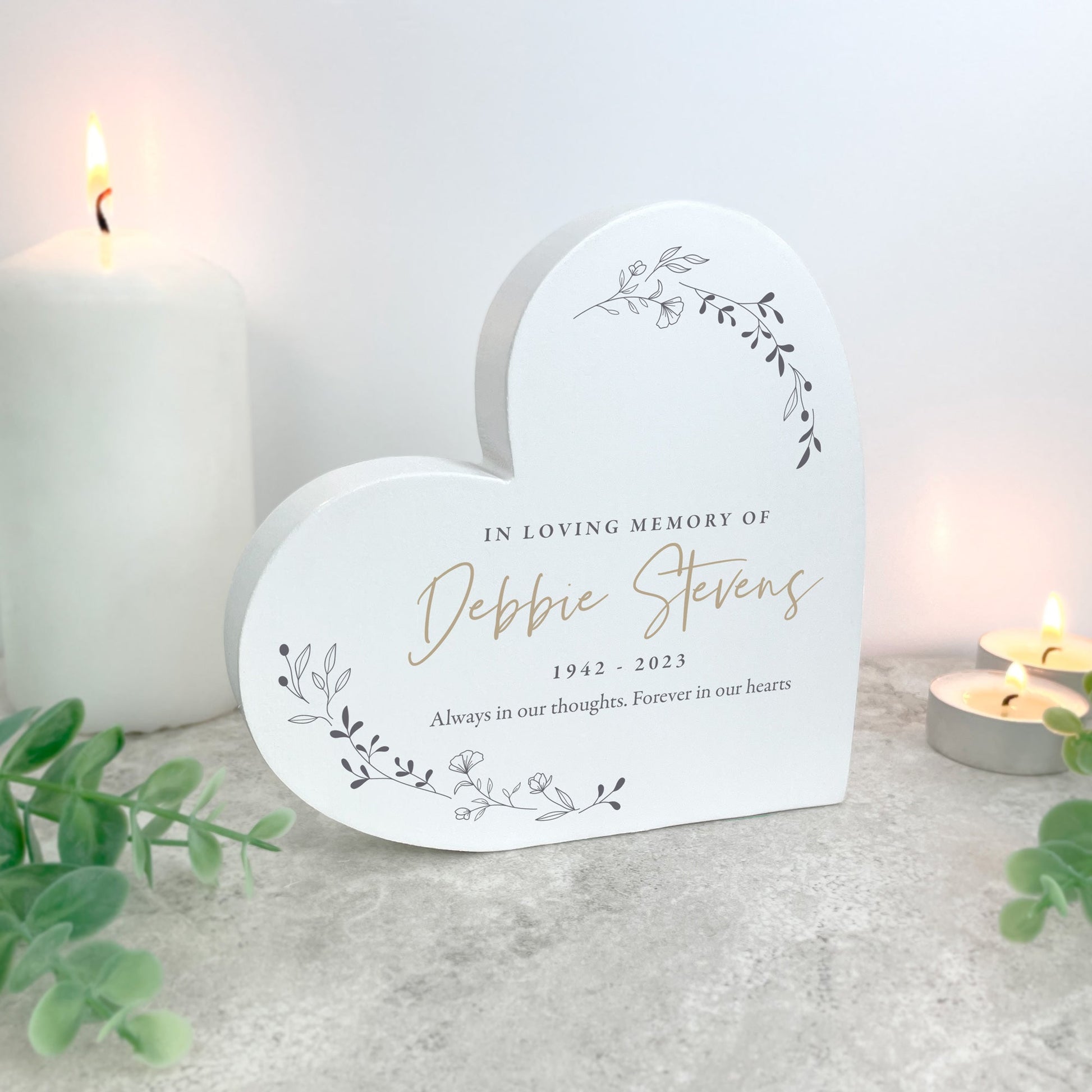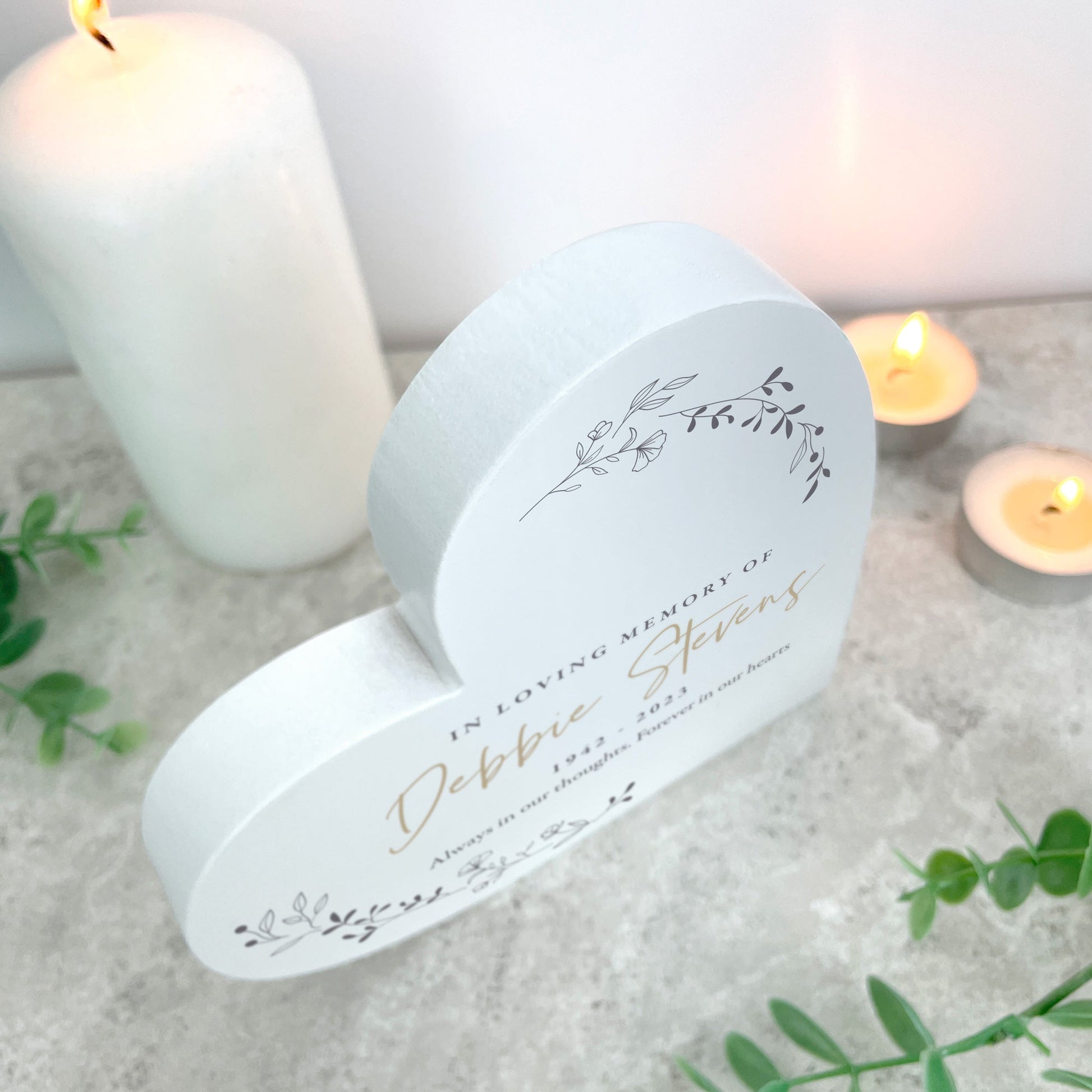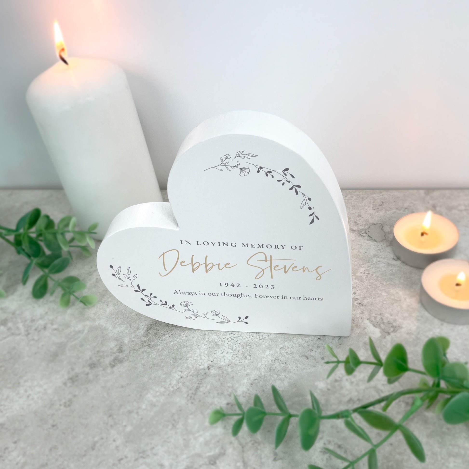 Personalised White Wooden Wreath Memorial Freestanding Heart