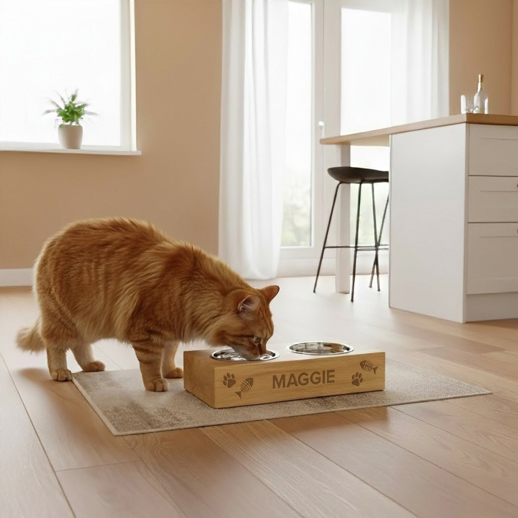 Give your feline friend the VIP treatment they deserve with this charming Personalised Wooden Raised Double Cat Bowl. Elevated feeding means better digestion and comfort for your kitty, while the wooden construction adds natural warmth to any room.