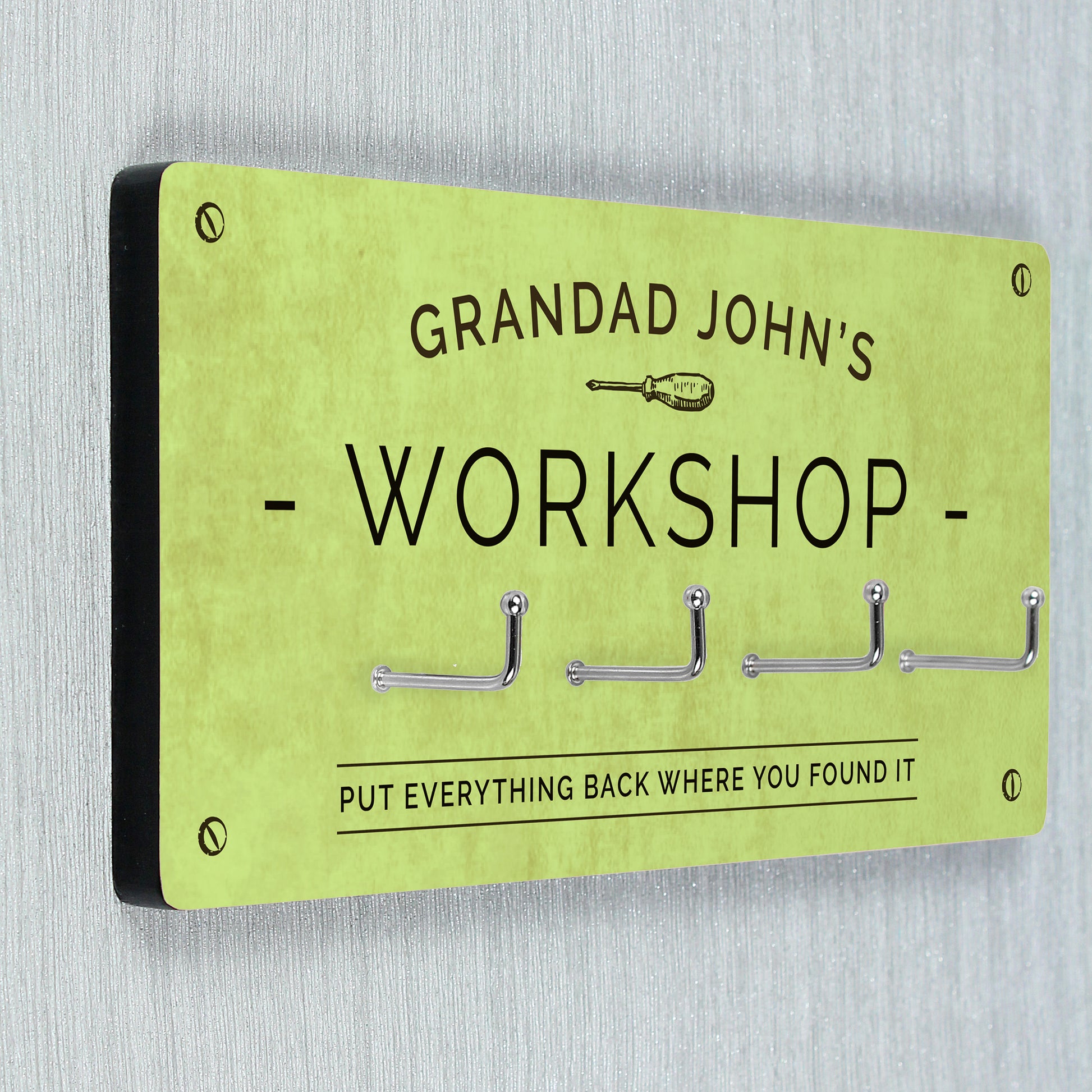 The wall hooks can be personalised with a line of text at the top, e.g. 'Harry's Car' up to 15 characters.