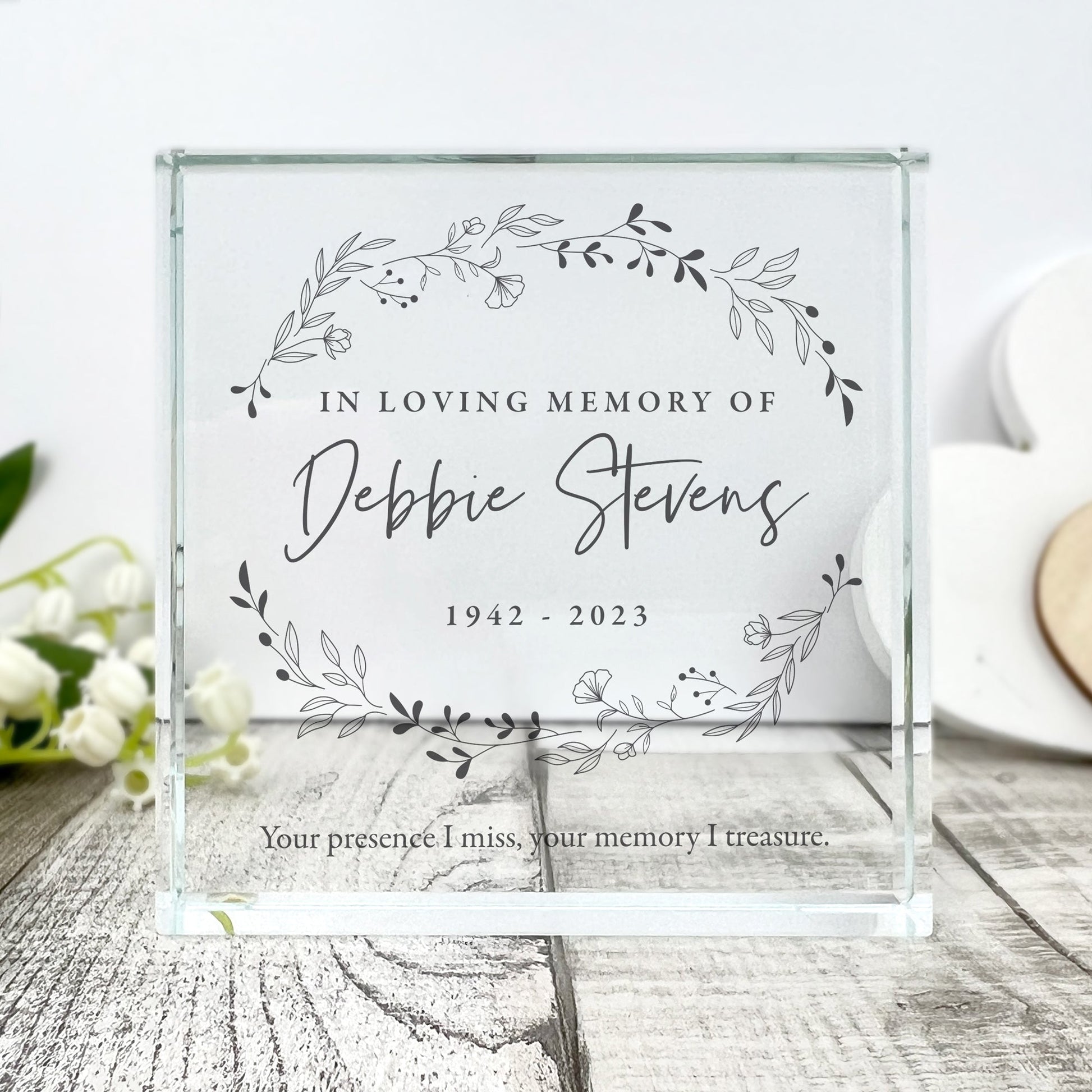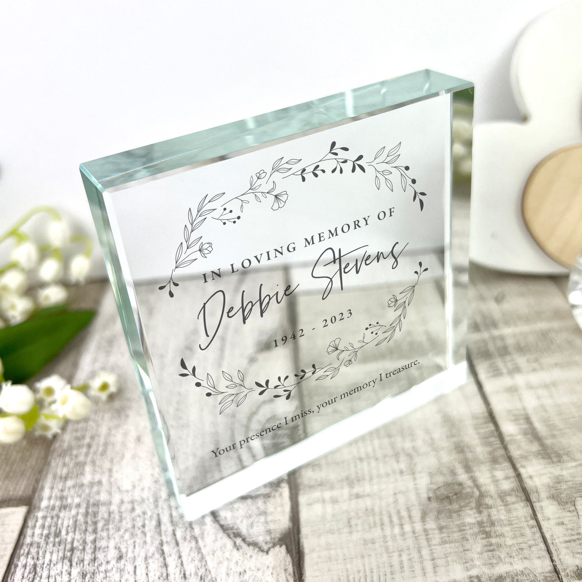 Offer a beautiful way to remember someone special with this personalised memorial glass token. These freestanding crystal tokens make a thoughtful bereavement present or small funeral gift. Personalise your glass token with four lines of custom text.