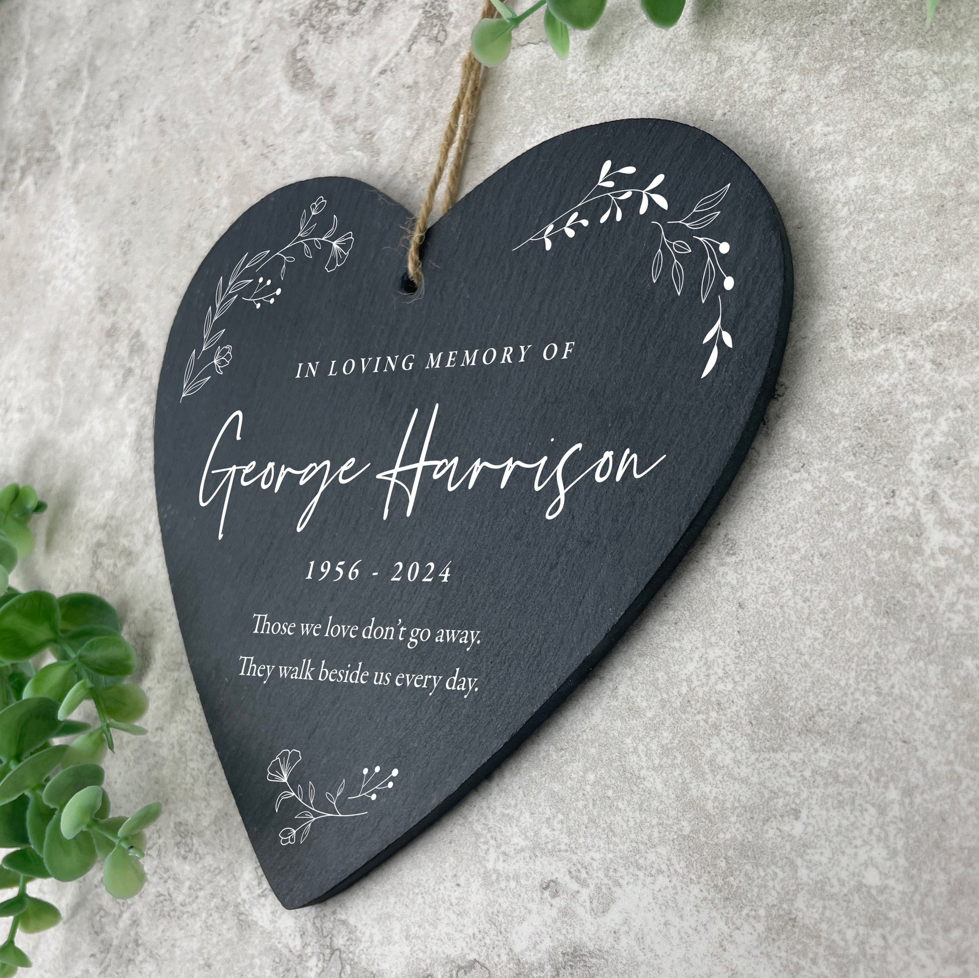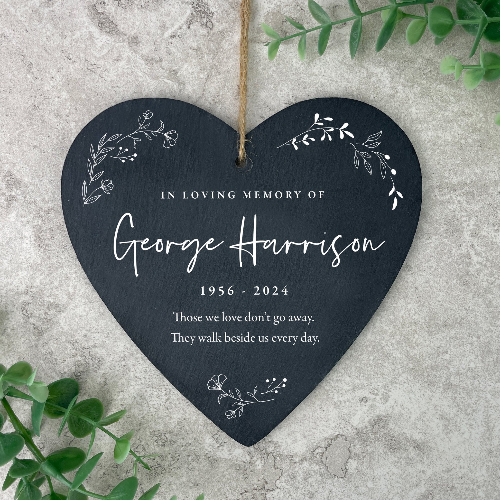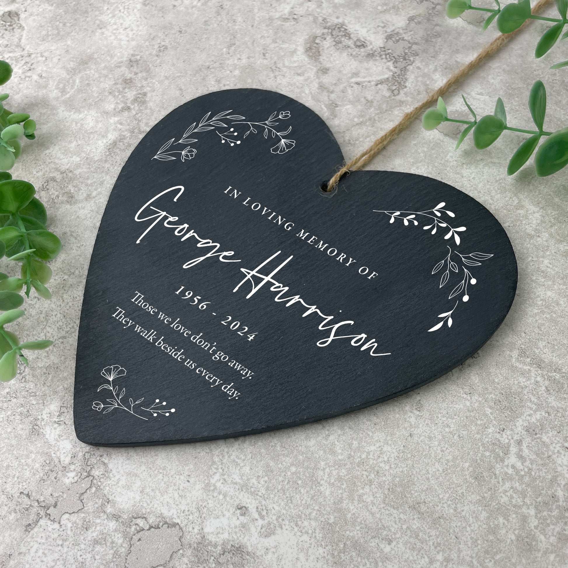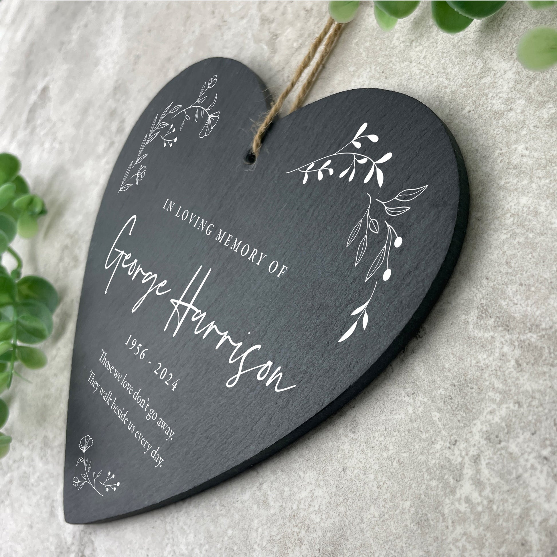 A stunning remembrance keepsake to hang in your home, garden, or at their resting place. This personalised slate heart features an elegant wreath design that beautifully encapsulates your loved one's details and a sentimental verse.