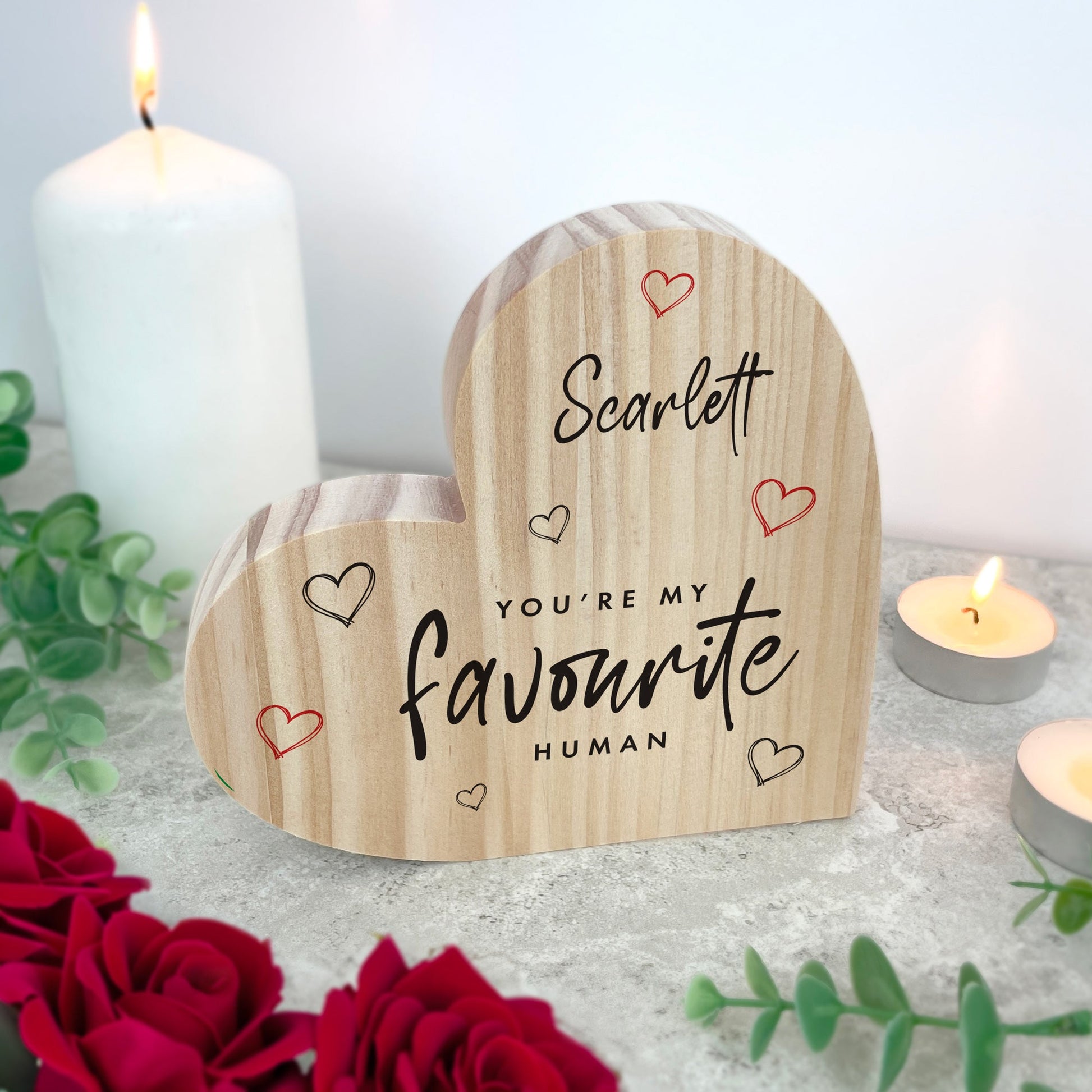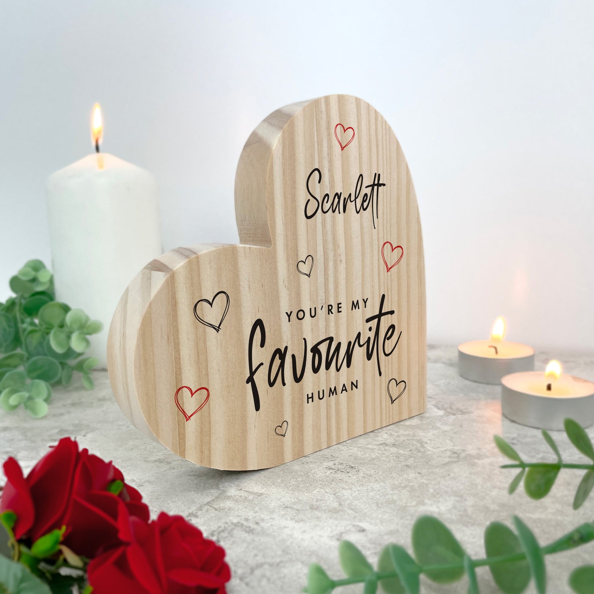 Personalised You're My Favourite Human Wooden Freestanding Heart