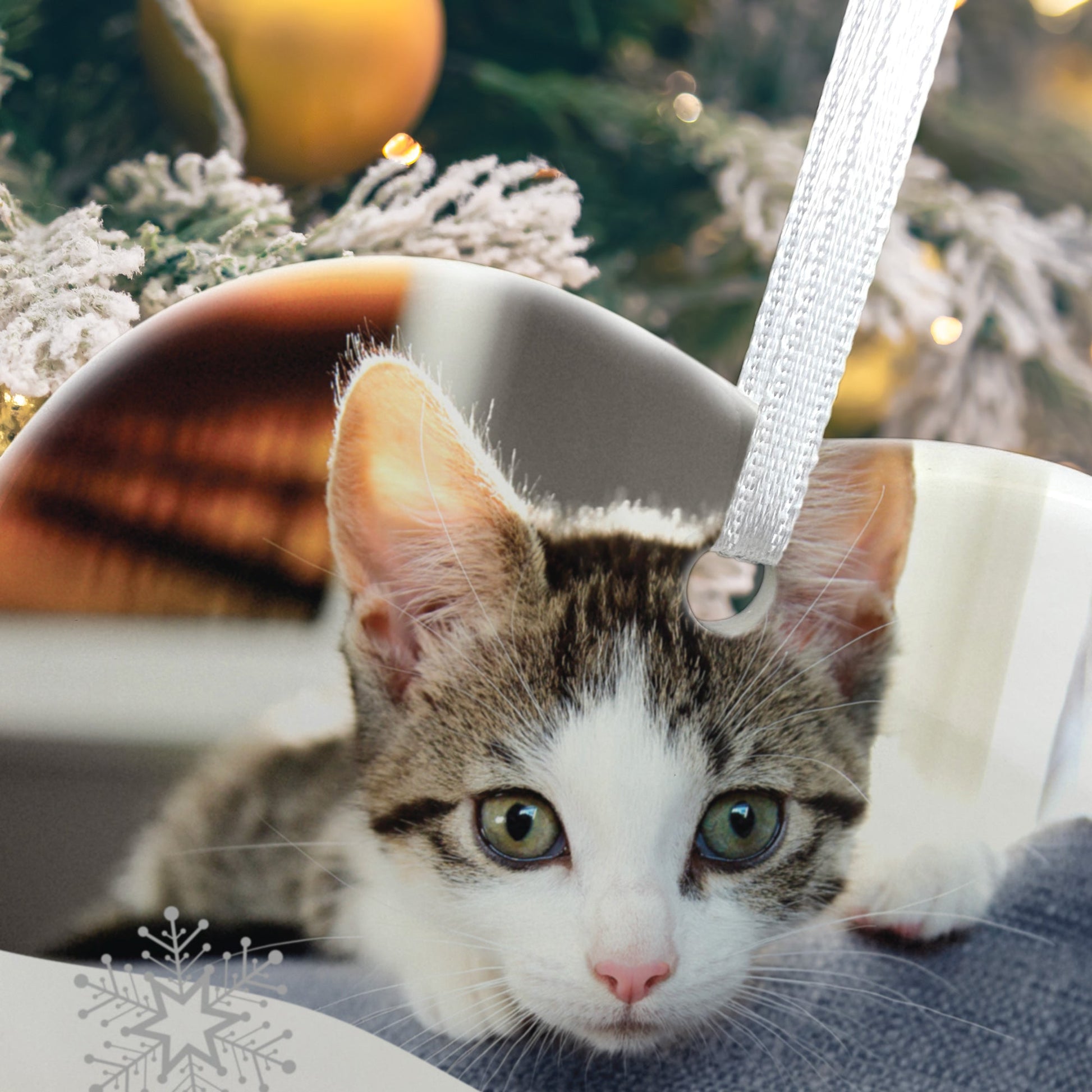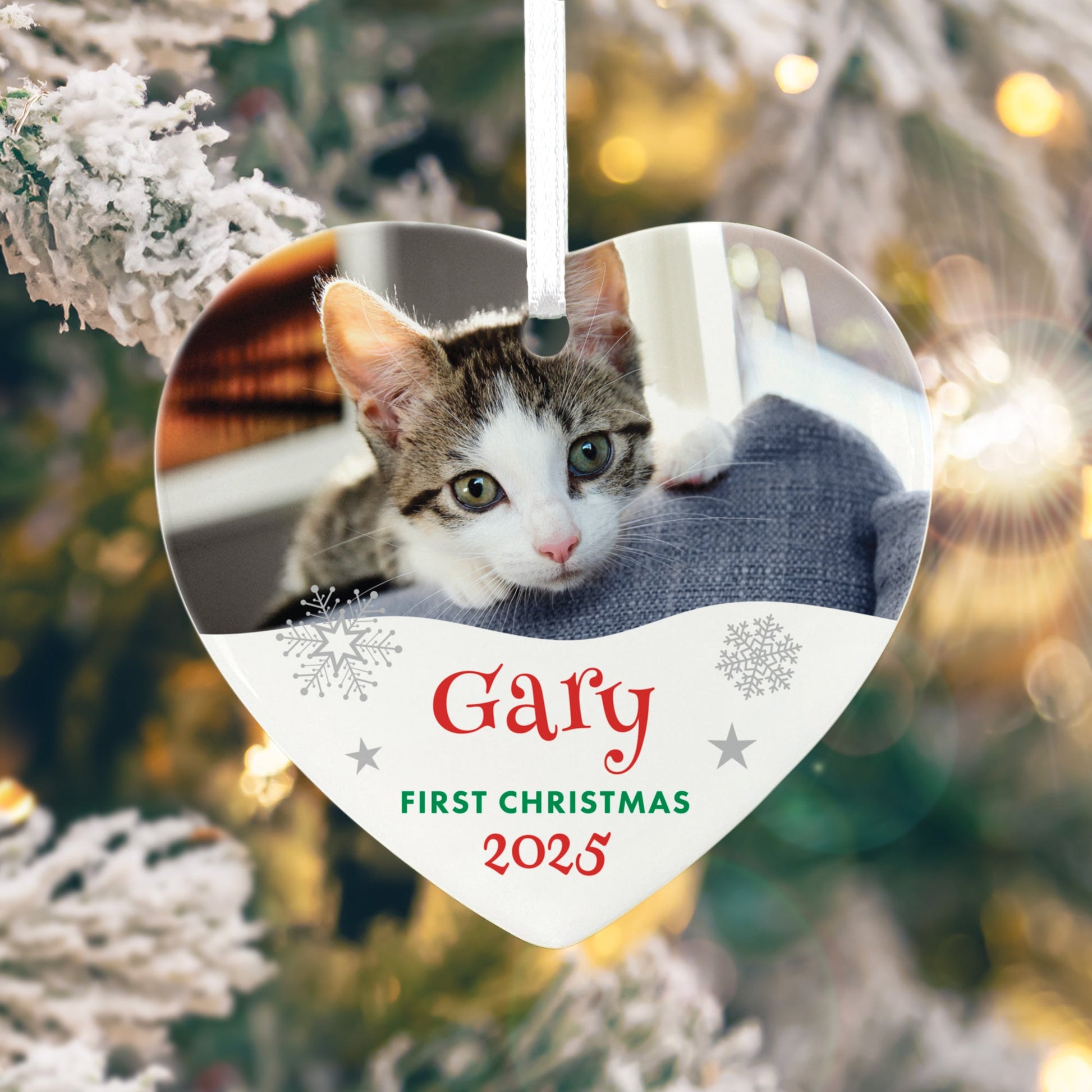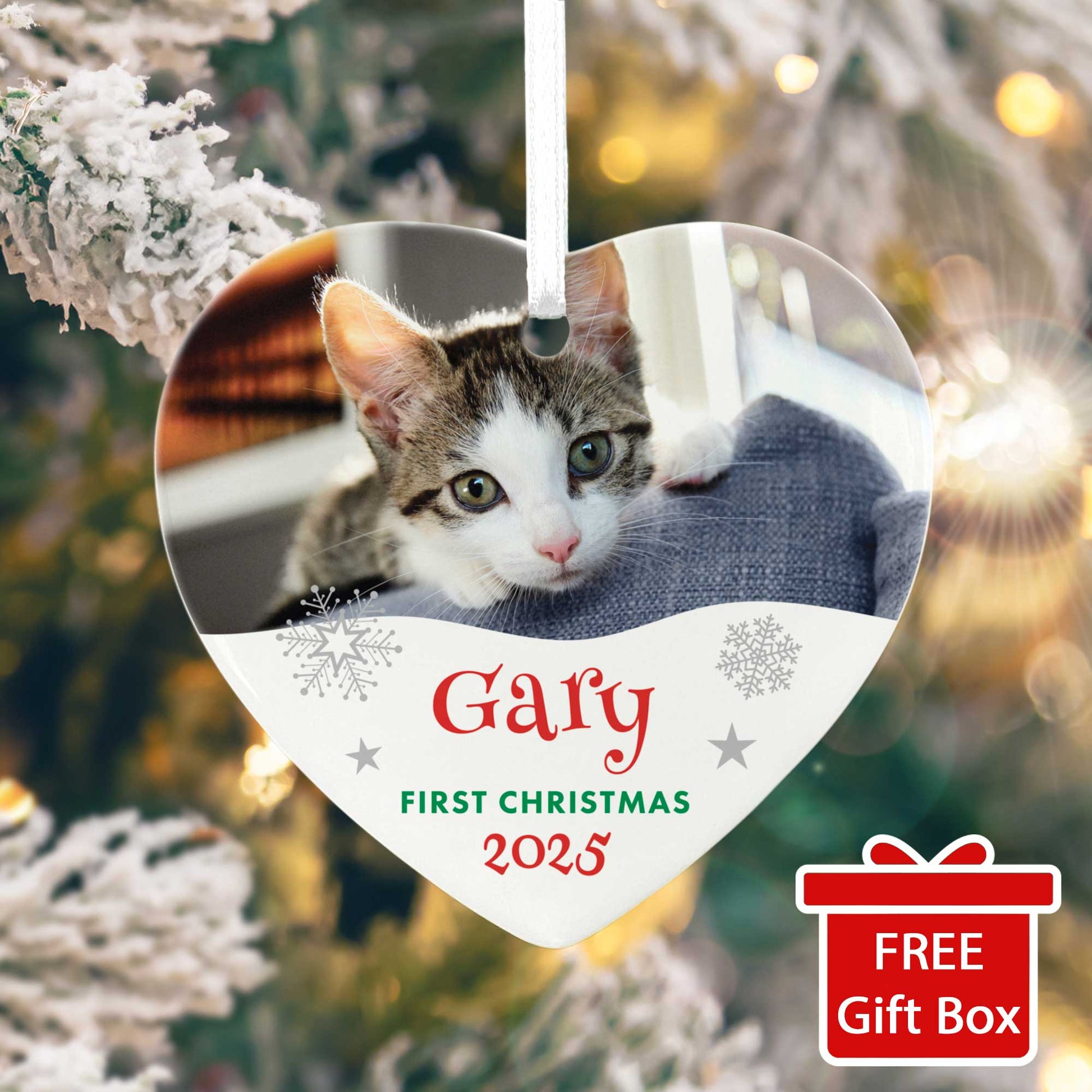 Celebrate your pet’s first Christmas with a special keepsake by uploading a treasured photo for this ceramic heart decoration. Perfect for displaying your beloved pet’s image on the tree, it can be customised with their name, a heartfelt message, and the year. Packaged in a white gift box with a protective foam insert, it makes a meaningful and thoughtful present to cherish throughout the festive season.